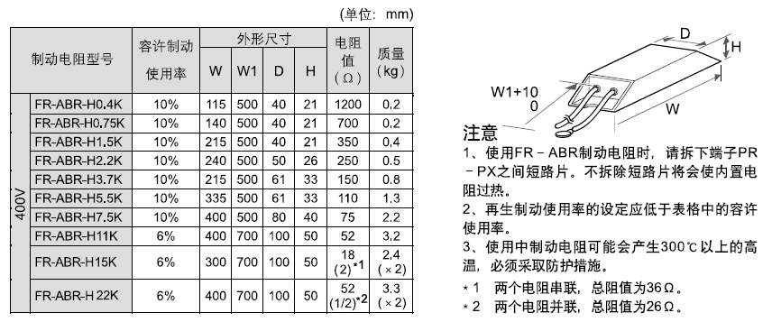 三菱小型變頻器所用制動電阻規格