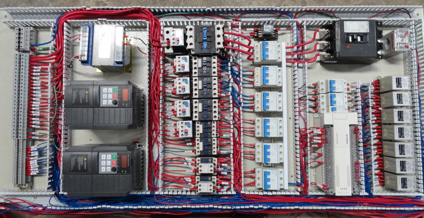 從圖片上看:用大了點(diǎn)數(shù)的PLC有點(diǎn)浪費(fèi),變頻器最好不要安裝在PLC正下方,以免灰塵和熱空氣進(jìn)入PLC內(nèi)部影響到正常工作和壽命,同要注意電柜散熱。