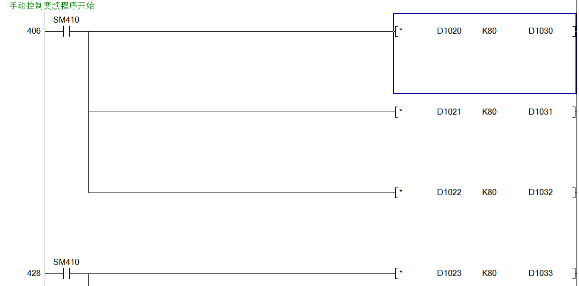 三菱Q系列,三菱變頻器,這個手動控制變頻器程序里、乘法指令是么意思?是脈沖還是什么?求高手詳解?
