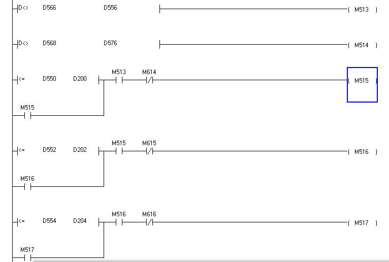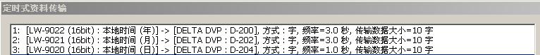 定時器程序,取威倫通觸摸屏MT6056IV的LW-9022與PLC的D200、9021與PLC的D202、9020與PLC的D204的時間(定時式資料傳輸),作臺達PLC(32EC)的時間,D566與D556作比較,一致時M513導通(限時開始),年限制D550與D200作比較,月限制D552與D202作比較,日限制D554與D204作比較。 年限制比較程序可以,月比較程序也可以,但日比較程序就不可以。(如今日的日子是2017年11月28日,D550/D552/D554/分別設置為2017/11/29/則M517還是導通,如果設置2017/12/01/則M517不導通)。在PLC里仿真時正常,觸摸屏與PLC連接時,則日限制失靈了。為什么?請教各位。程序見附件
