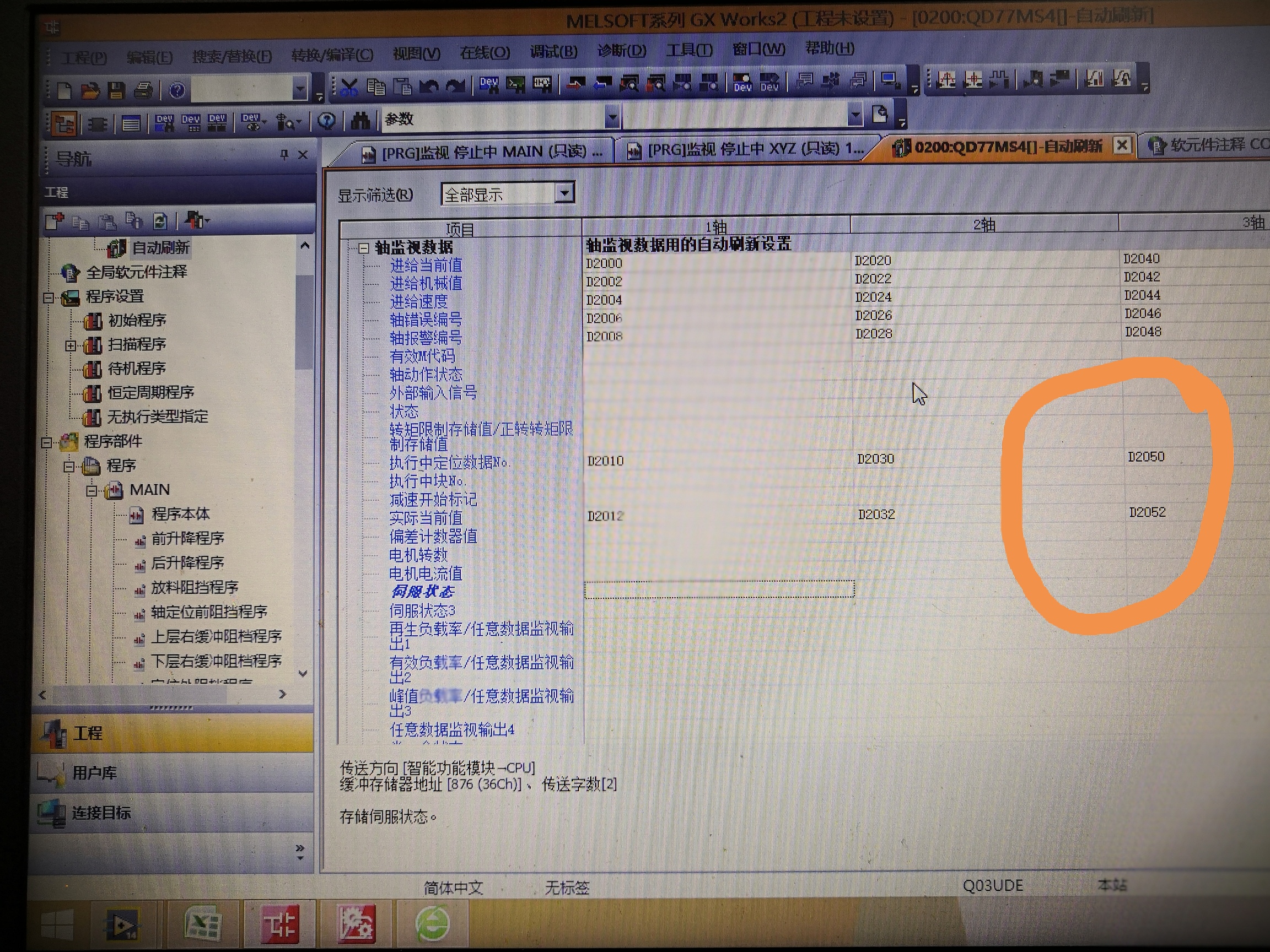 程序中有個(gè)d2054相當(dāng)于以前qd75中的U0/g1500啟動(dòng)緩存器,