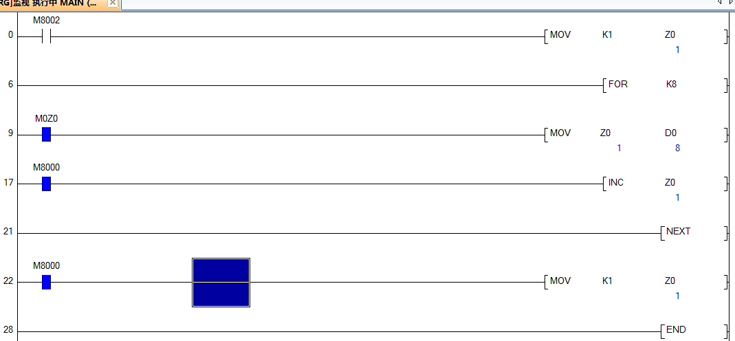 這就是一個標準的循環(huán)語句結(jié)構(gòu),用FOR 循環(huán)配合變址寄存器指令