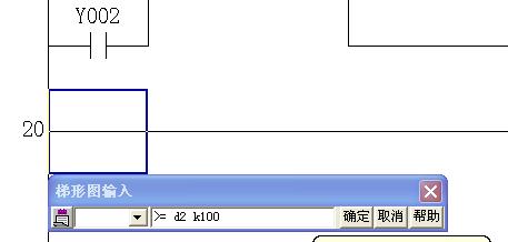 誡請問各位高手:     >=  D2  K100     在程序的左母線上怎么輸入,我就這樣一步一步的輸入結果提示出現指令幫助對話框