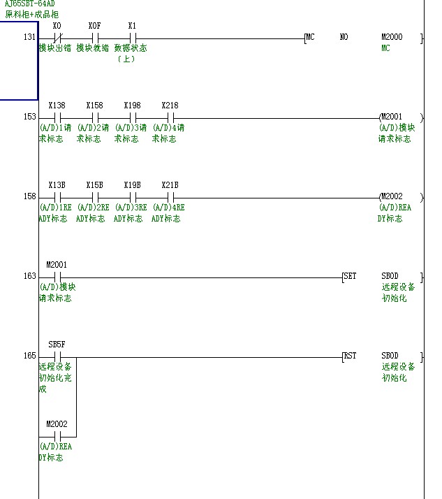 主站和CC-LINK 都沒報警,前面5塊模塊也正常(都有“請求標志返回”分別是 X138、X158、 X198)最后一塊模塊就沒 “請求標志返回”“X218” 程序就不能運行了。AD程序見 圖3。 我幫程序和軟原件分配表打包,那位大俠幫小弟看看問題出在那里。