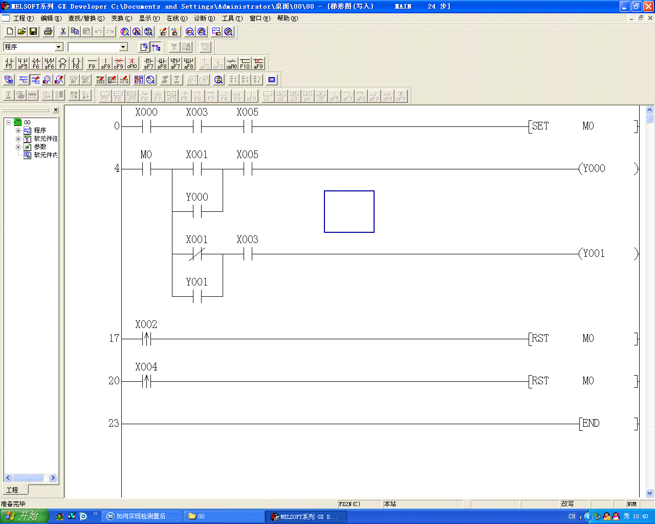 我說一下第一行指令,X000檢測到后Y000長汽缸得電,X002檢測到后Y000失電回退,汽缸回退一點點距離后,X002就斷開了,這時Y000又得電向前推,X002檢測到后Y000又失電回退……周而復(fù)始……