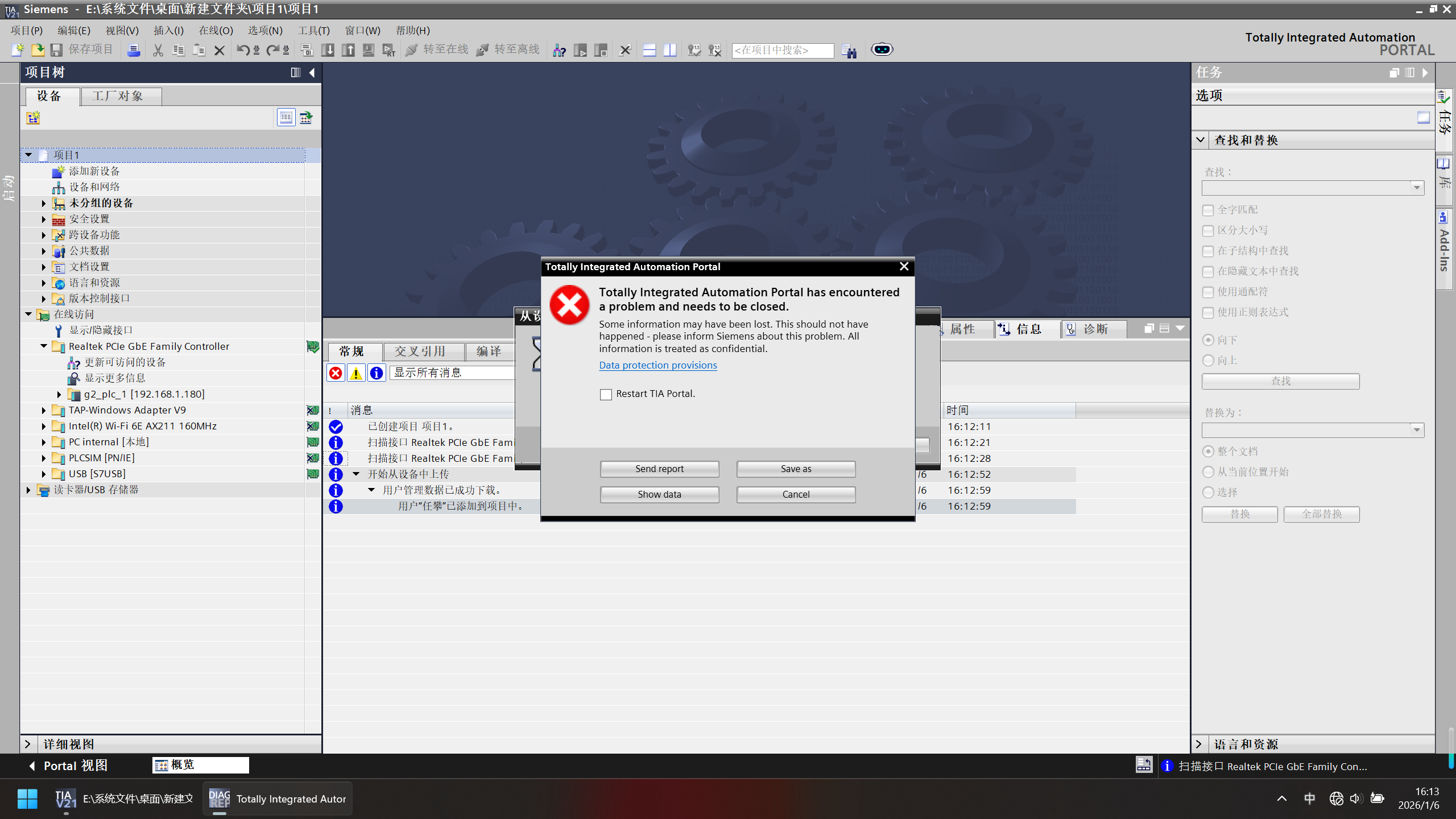 引用引用第1樓hstec2002于2026-01-06 16:23發表的 :TIA Portal上傳通常需要用最后下載的版本。