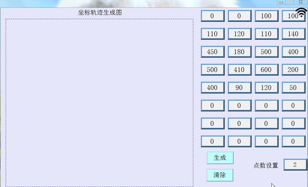 如圖所示,寫入坐標,和點數設置,即可生成軌跡圖