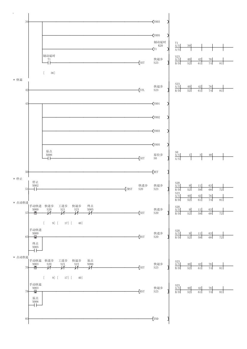 建議手動/自動輸出某點時,不要直接去輸出,最好經M再轉直接輸出,手動某動作也不要置某步,而是置某點比如M10(然后LD M10 OUT Y0)等