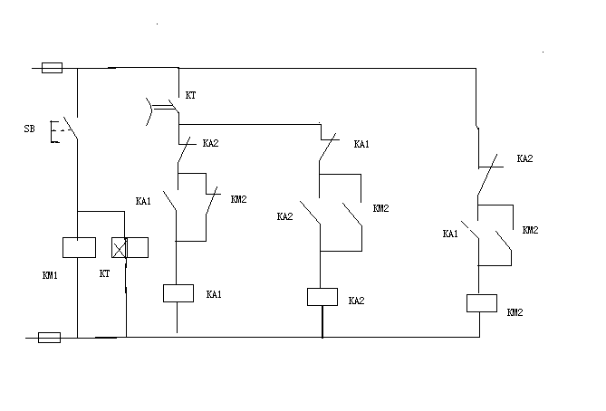 就是第一次接通開關,KM1得電,5秒后KM2得電,斷開開關,KM1失電,但KM2保持通電,再接通開關,KM1得電,5秒后KM2失電,如此循環(huán)。時間繼電器和開關只有一個,用傳統(tǒng)控制電路如何做?謝謝