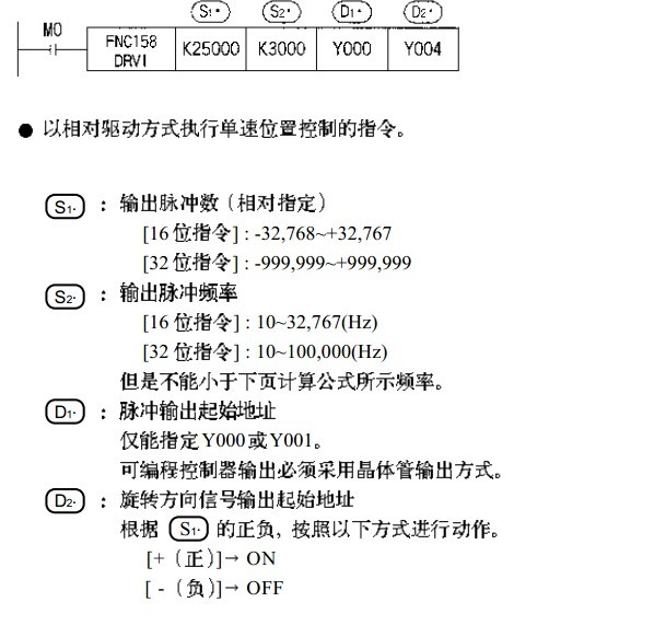 第一個圖指令介紹上說:S1脈沖輸出數(shù)32位指令在-999999~+999999之間,第二個程序圖上S1=9999999,和第一個圖上介紹不符,那么,程序上S1按多少處理,還有怎么理解脈沖輸出起始地址,現(xiàn)在還不是很理解,求高手解釋