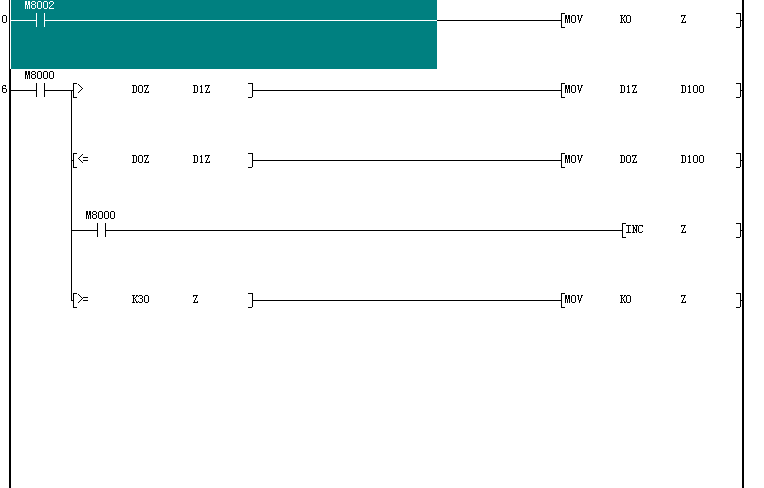三菱A系列PLC,怎么在30個數據寄存器中求最小值?30個數據寄存器的數據,。。。