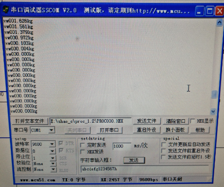 用串口精靈測試稱重模塊后    波特率9600   數據位 8  停止位 1 校驗位  無  流控制 無   測試的時候   能接收到正確數據