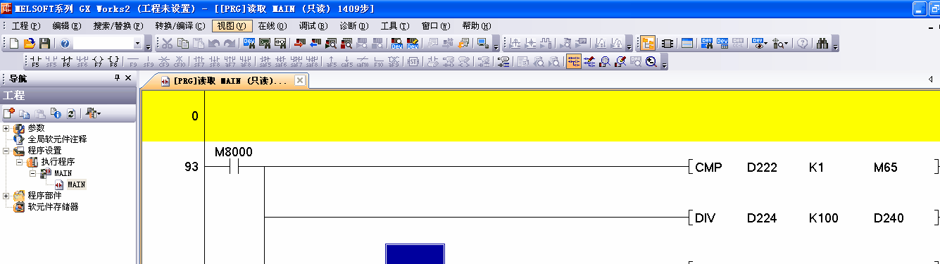 三菱程序讀出來,第一段是黃色的,,是不是程序超長了