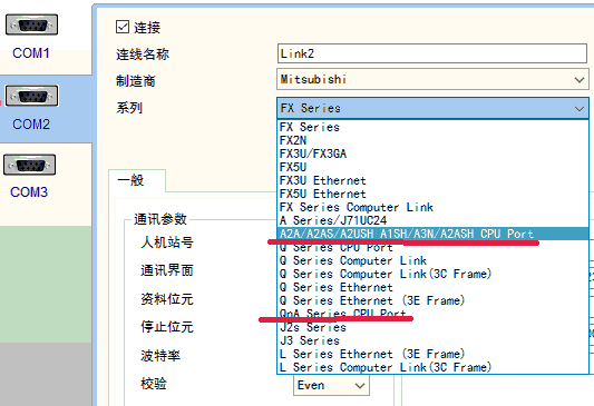三菱Q2ascpu屬于A系列還是QNA系列,我用臺達觸摸屏是該選擇哪種?