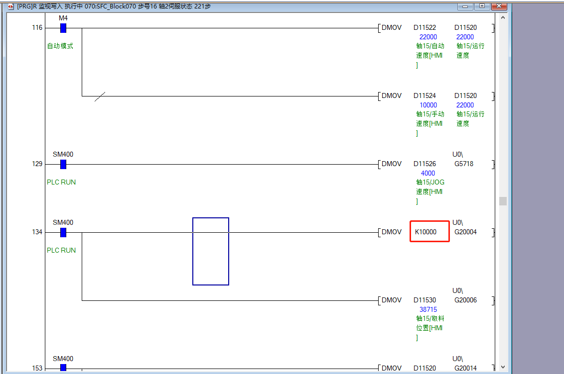 。4.U0\G20004只在這一個(gè)地方寫了。5.速度寫進(jìn)去,是沒有啟動(dòng)?6.PLC本身的BUG?