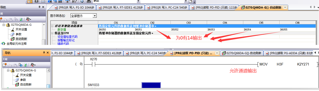 在用Q66DA-G時CH1/3正常,而CH2/4/5/6一直有輸出,輸出電壓是14V,用的是自動刷新,CH2/4/5/6自動刷新的值一直是0而實際測量通道一直有14V,而CH1/3的值給4000時正常輸出是4V,給0時輸出為0,請問大神這是什么原因造成的,線路排除沒有問題。
