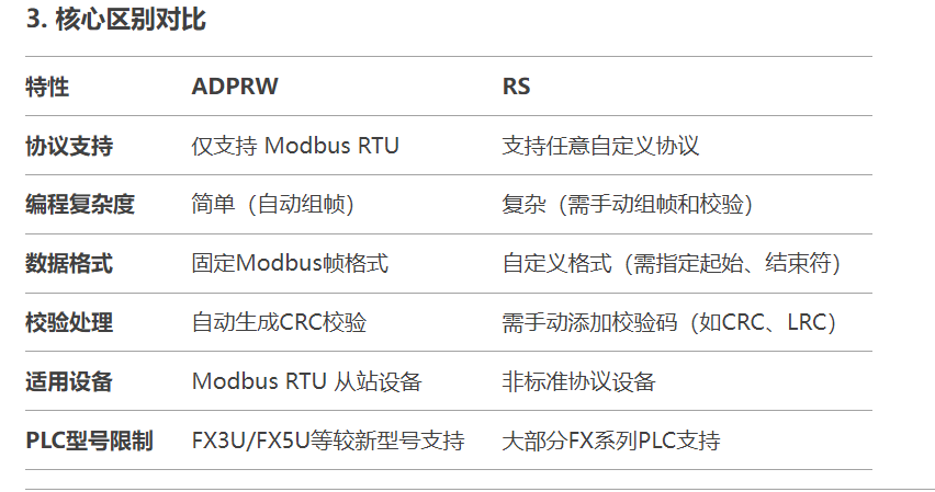 ADPRW就是標準MODBUS協議進行通信,RS就可以對一些不使用MODBUS協議的設備進行通信