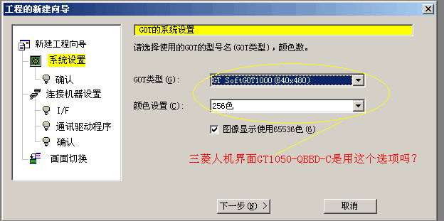 我想請問熟悉三菱人機的朋友,三菱人機GT1050-QBBD-C能用下列貼圖中的軟件組態嗎?可我卻找不到相應選項。
