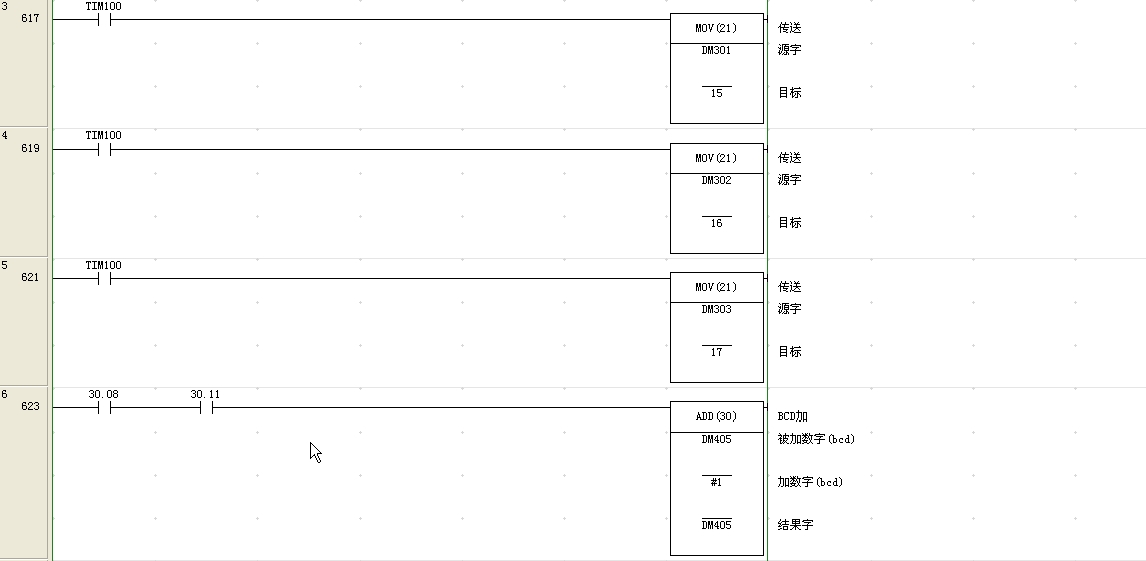 我用歐姆龍CPM2AH-60CDR+20EDR+DA041編程0-10V輸出總感覺太繁瑣了,不知有沒有簡單的方法請(qǐng)高手指教。下面是我編的程序
