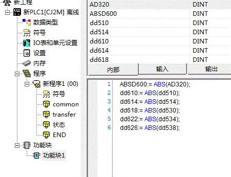 PLC的功能塊都差不多啊,歐姆龍功能塊可以用結(jié)構(gòu)文本和梯形圖編寫,你這個就是結(jié)構(gòu)文本寫的求絕對值