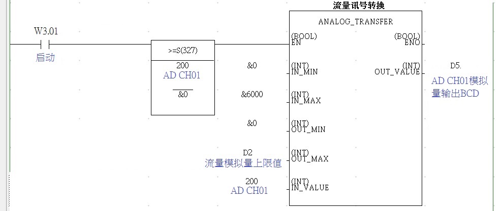如果 IN_MAX (類比輸入&6000)流量器具顯示最大值 大于等于 IN_VALUE 實際值 (AD CH01 2000) 并且, IN_VALUE 實際值(AD CH01 2000) 大于等于IN_MIN(類比輸入&0)
