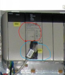 PLC上兩口: 一個(gè)小外設(shè)口(上紅)。一個(gè)9口(下藍(lán))的。 (9口是干嘛用的?第一次用歐姆龍。) 見(jiàn)圖: 紅圈,藍(lán)圈。