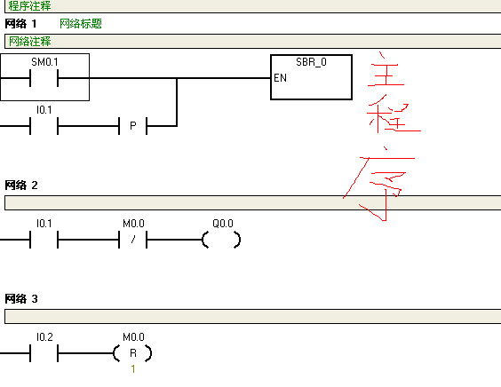 1.主程序:在PLC上電后調用一次子程序和I0.1從0變為1時調用一次子程序,用來初始化高速計數器,設置高速計數器的各項參數。