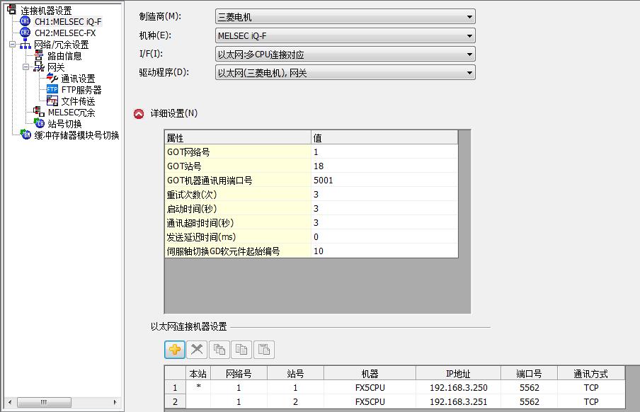我現(xiàn)在有一臺GT2000的觸摸屏我要帶2臺5U的PLC ,我用的是以太網(wǎng)和交換機進行連接,那我觸摸屏怎么來區(qū)分的PLC的輸入輸出點的?下面是我自己設(shè)置不知道是不是這樣?然后寫點的時候選擇站號?第一次用請教一下。