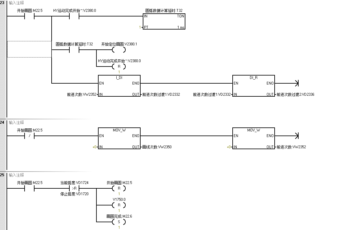 程序把圓分成若干份,每次到達位置后開計算下一位置然后再運動。運動到位后再次計算。