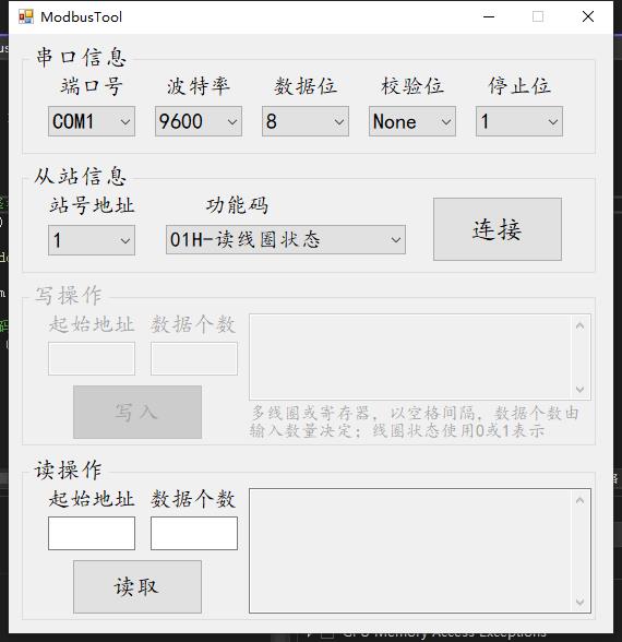 分享一下,自學C#的第一個小軟件。借助NModbus4,完成Modbus Rtu的制作。使用Modbus slave測試讀、寫功能沒有問題!寫的有些亂,不好的地方請指點一下