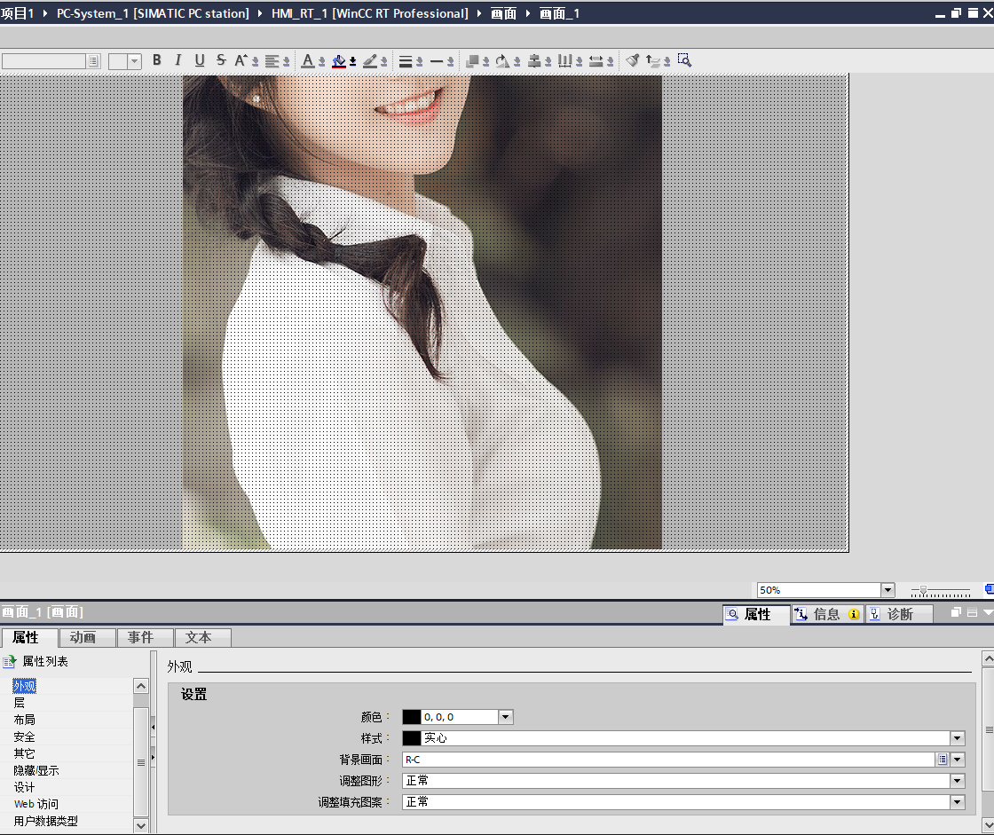 各位大師!博圖WINCC畫面支持加背景圖片嗎  不是添加圖片移到最底層 ,因為移到最底層時,我們在添加其他元件,進行多個元件鼠標圈選  ,底層圖片會影響選擇,隱藏圖片層可以,但是又失去了圖片的參照,總之有背景圖片功能是最好的,不知道WINCC是否能實現(xiàn)這一基本的功能