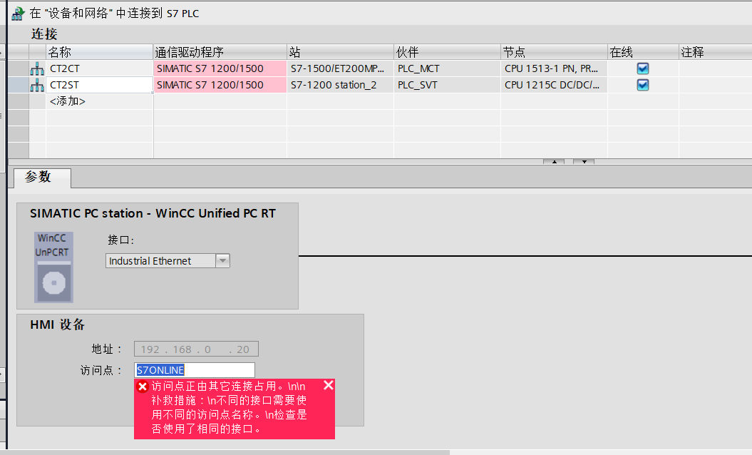 1臺PC屏連接2個PLC,分別用S71500,S71200,用網線連接的,2個PLC都是單獨的網線插PC機單獨的網口,組態的畫面只有S71500的PLC可以通訊上,S71200的連不上,不知道是哪個地方的設置不對還是其它什么原因。求大師指點迷津!