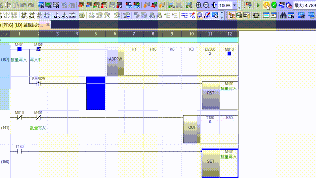 引用引用第12樓anlyl2014于2024-03-01 18:28發(fā)表的 :看了一下你的程序,有兩個ADPRW,不要一直寫,寫完成要復位不要再寫;第一個是設定整數(shù)顯示,開機寫一次就好了;第二個是批量寫入,也不要一直寫,附件是修改過的程序,你自行測,看行不行