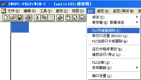 接通PLC的電源,把PLC的“Run/Stop”開(kāi)關(guān)放在Stop位置上,打開(kāi)FXGPWINC 編程軟件,新建一個(gè)工程,使得的“PLC存儲(chǔ)器清除”功能可用,如圖: