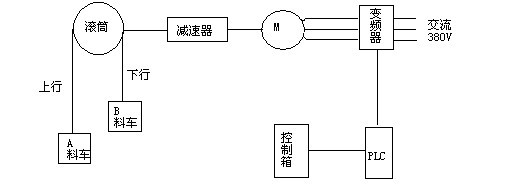 如圖礦井中的提升拖動系統,由電動機通過減速器,帶動滾筒旋轉,使兩個料車交替上料,要求電動機能頻繁啟動、停車和反向等控制,轉速還需按一定規律變化。