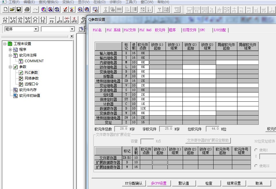 看看PLC參數(shù)設(shè)置中的的軟元件設(shè)置,附圖一張