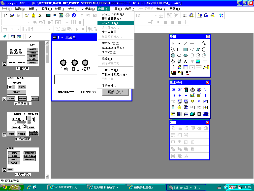 海泰克屏在程序中有個跳屏存儲器,把你想要跳轉的屏號傳送進去,它就顯示你要的屏。如你這里,將34傳送到存儲器中,就顯示這個報警畫面