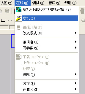 連接好通訊線,打開編程軟件,設(shè)置好通訊參數(shù),新建對應(yīng)型號PLC程序空白文檔,然后選擇聯(lián)機(jī)