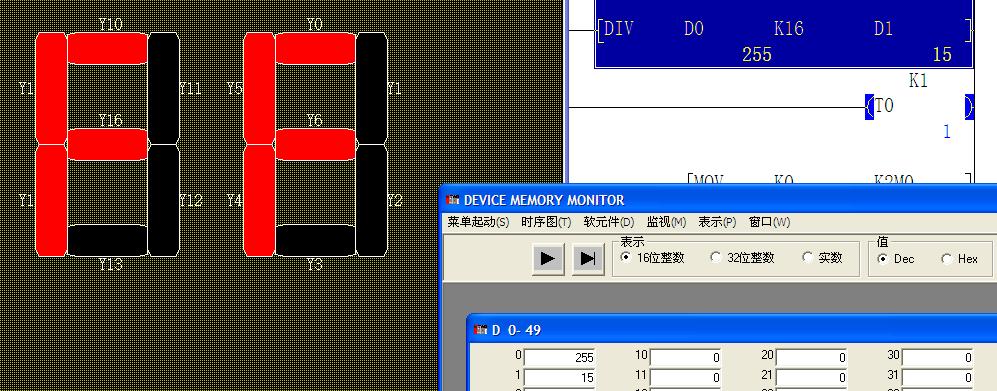把除法指令中的K10換成K16,就可以顯示十六進制00-FF(十進制00-255)。
