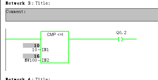 CMP是比較。即當IN1<=IN2時,滿足CMP<=1的條件,則有Q0.2輸出。