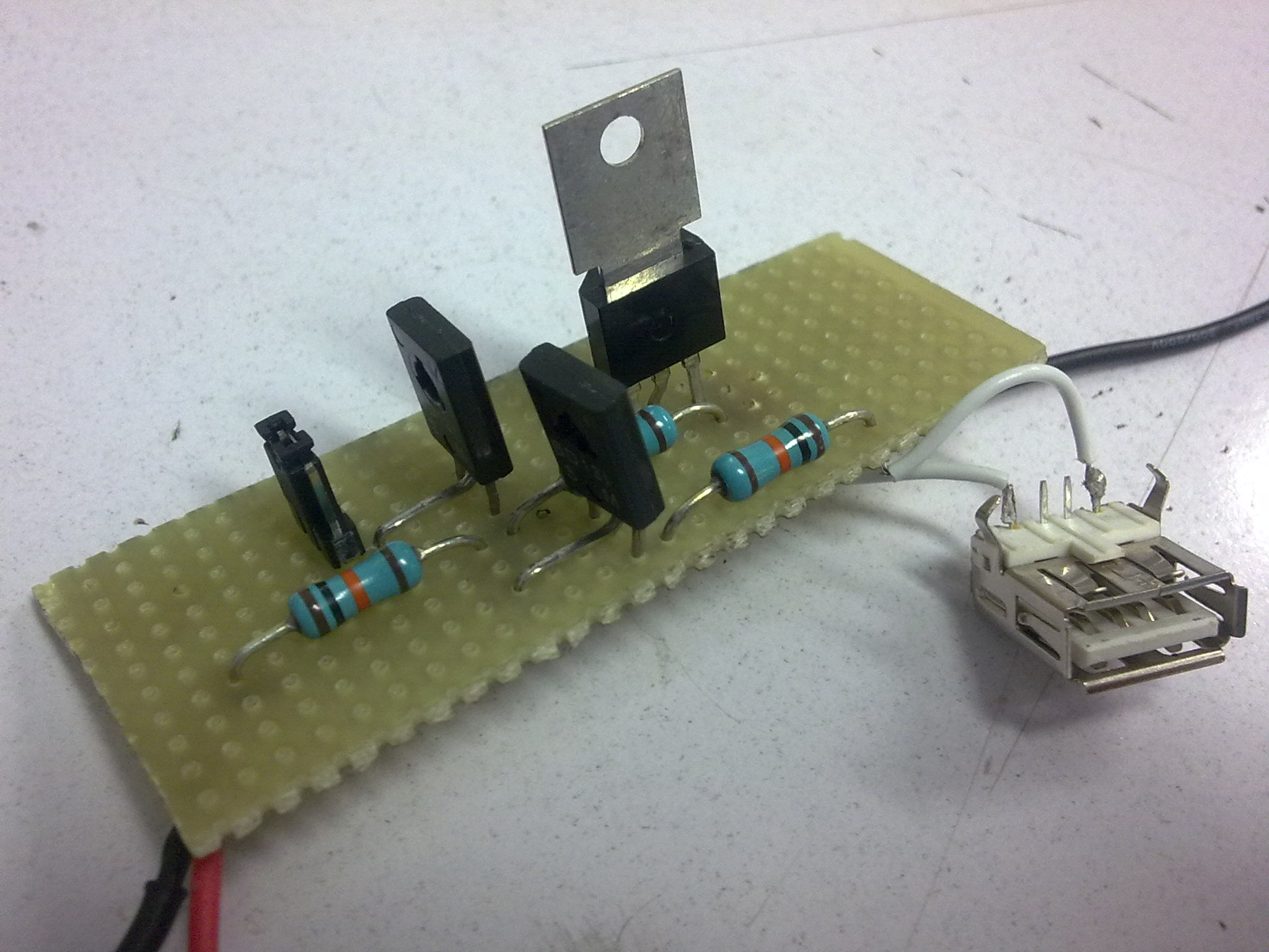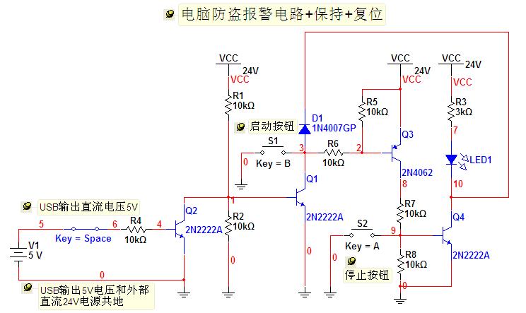 當USB接通時,Q2基極為高電平,Q2導通,Q2集電極輸出低電平,Q1截止.