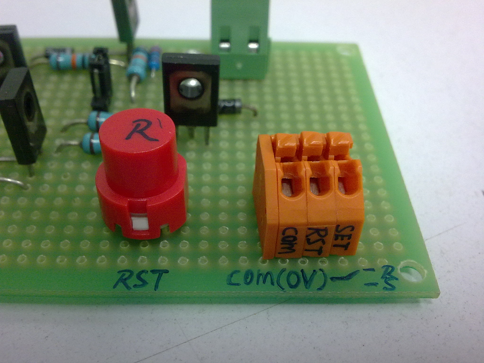 實物圖中的短路帽用來切換點動模式和RS觸發模式。短路帽加在原理圖中二極管D1處,用來決定D1是否在電路中起作用。