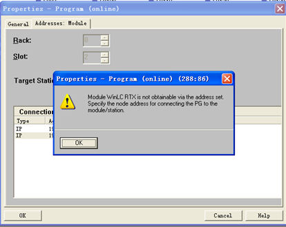 在下載更新程序時(shí)出現(xiàn)如下:Module WinLC RTX is not obtainable via the address set. Specify the node address for connecting the PG to the module/station.