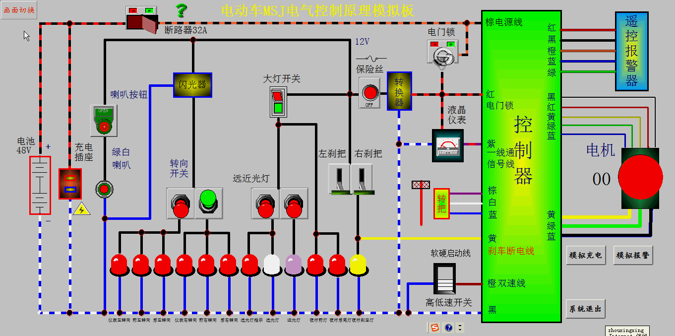 傳統電動車售后維修人員培訓一般廠家最多提供一張原理圖,現在開發的一款模擬器,()目前只有一款控制器,后續計劃將各個品牌的電控原理都集成進去)將枯燥的電氣原理圖用仿真來展示,特別是電流的流向,希望破解版的組態王6.55不負眾望