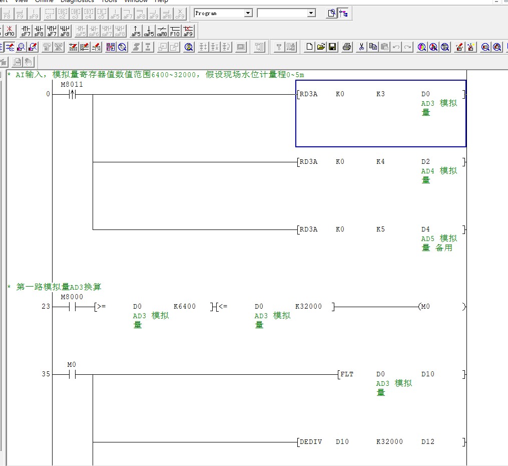 引用引用第4樓旃檀落塵于2020-03-15 12:48發(fā)表的 :之前用過(guò)類(lèi)似的板子,當(dāng)時(shí)板子是直接讀取D寄存器的值就可以了,沒(méi)有類(lèi)似三菱模擬量模塊的編程,直接用MOV指令調(diào)用