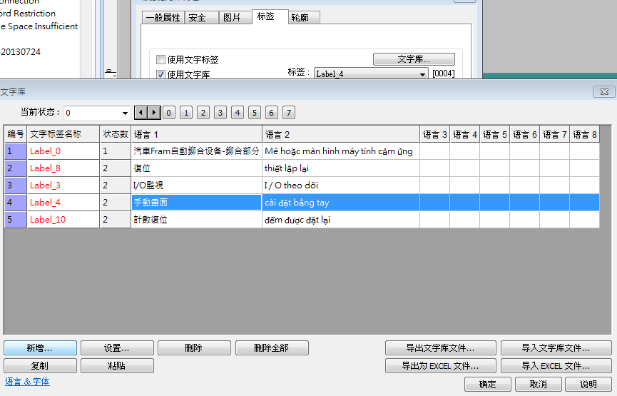 維倫觸摸屏本身有自帶功能,切換語言1 ,語言2.。。語言8,但實際操作過程中,中文字體的編譯與長度,對照其他的語種來,結果就會出現畫面字休不協調,(長寬高)