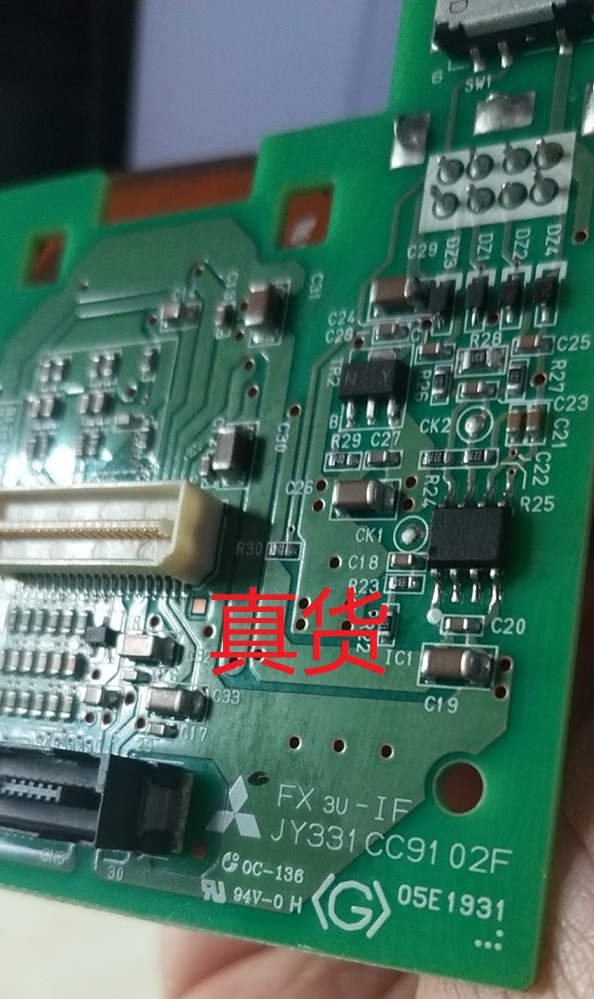其中有一種辦法就是摳開FX3U側面的蓋子,看電路板上有沒三菱標志。