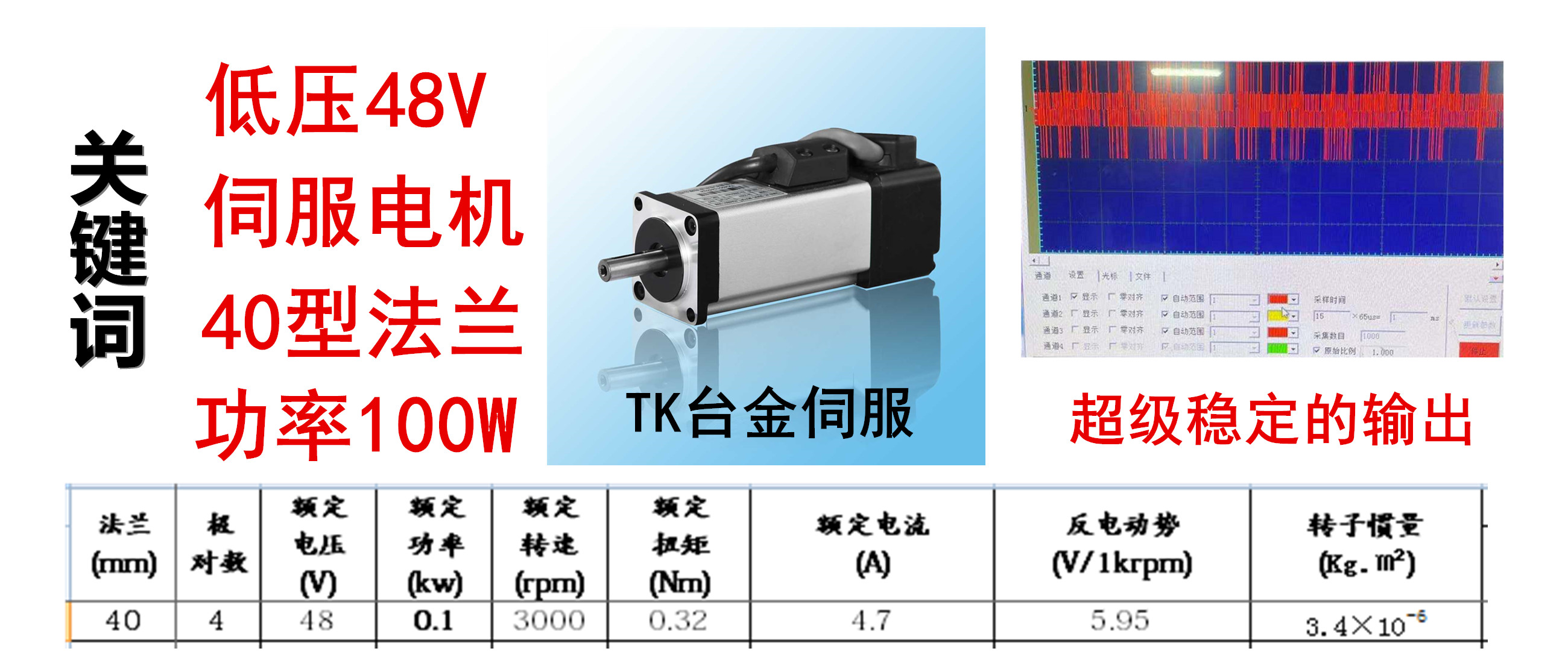 近日,珠海臺金科技生產(chǎn)的40型法蘭低壓48V伺服電機經(jīng)過專家評測,波動僅僅為1-2,完全達到甚至超越了許多進口品牌的同類產(chǎn)品。