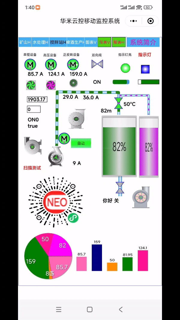 PC端組態(tài)界面及微信小程序體驗(yàn)結(jié)果如下: