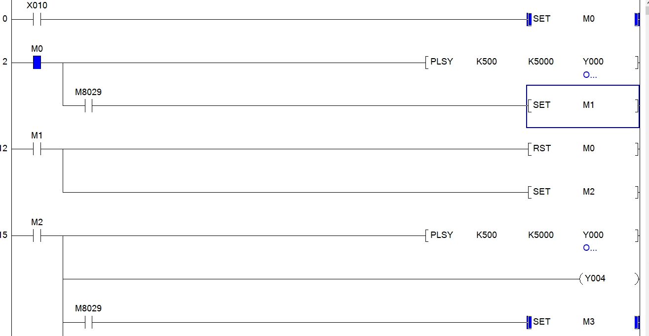 應該可以,下面還有段置位和復位的,沒截上來,你根據上面的邏輯推導下(就是M3復位M2,置位M0的)